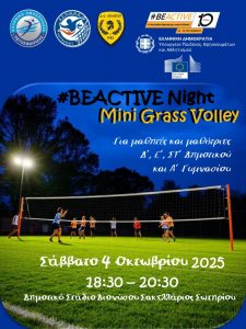 1 Τουρνουά Night Grass Mini Volley με συνδιοργανωτές τον ΑΟ ΔΙΟΝΥΣΟΥ, την ΕΟΠΕ και την ΕΣΠΑΑΑ.