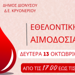 Ο Δήμος Διονύσου και η Δ.Ε. Κρυονερίου σας καλεί να συμμετάσχετε στην Εθελοντική Αιμοδοσία:
