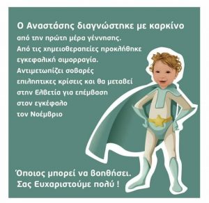 Με βαθιά συγκίνηση και αίσθημα ευθύνης, απευθύνουμε έκκληση για στήριξη στον μικρό Αναστάση, έναν μικρό συμπολίτη μας που δίνει τη δική του γενναία μάχη για τη ζωή.