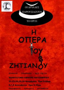 Οι Δρυάδες παρουσιάζουν το θεατρικό «Η Όπερα του Ζητιάνου!” σε διασκευή- σκηνοθεσία της Λ. Σάμιτα για 8 παραστάσεις στο Πολιτιστικό Κέντρο Κρυονερίου.