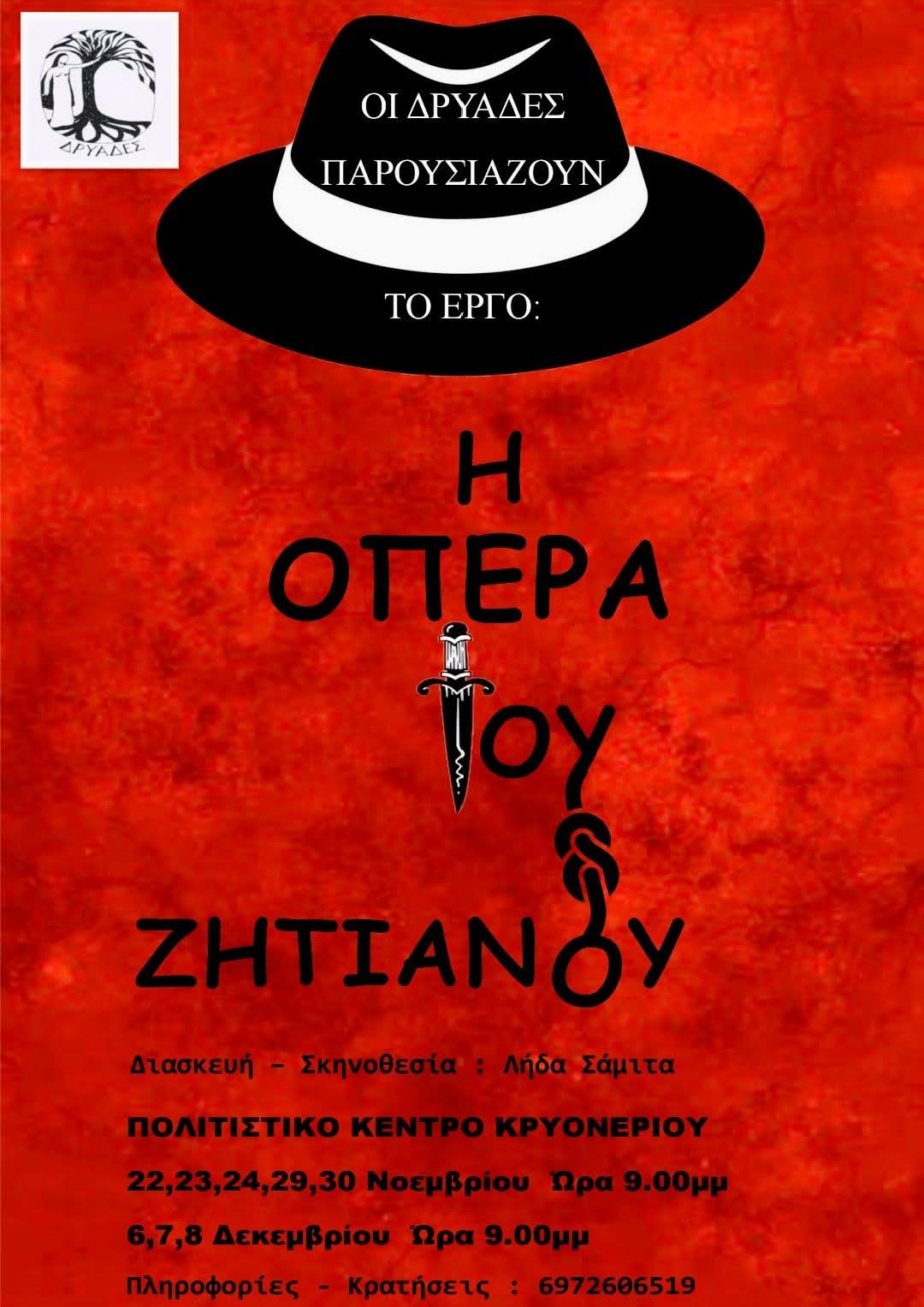 Οι Δρυάδες παρουσιάζουν το θεατρικό «Η Όπερα του Ζητιάνου!” σε διασκευή- σκηνοθεσία της Λ. Σάμιτα για 8 παραστάσεις στο Πολιτιστικό Κέντρο Κρυονερίου.