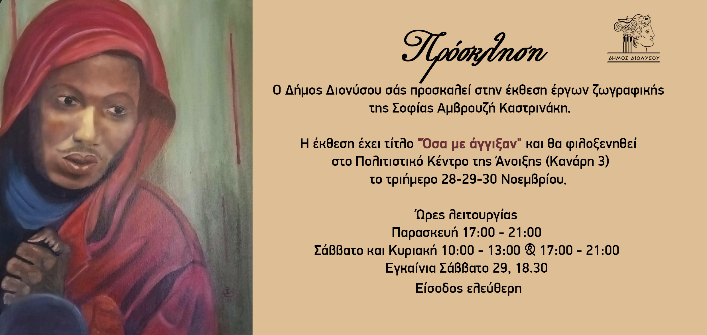 Δήμος Διονύσου: Έκθεση ζωγραφικής της Σ. Αμβρουζή Καστρινάκη στην Άνοιξη 28-30/11