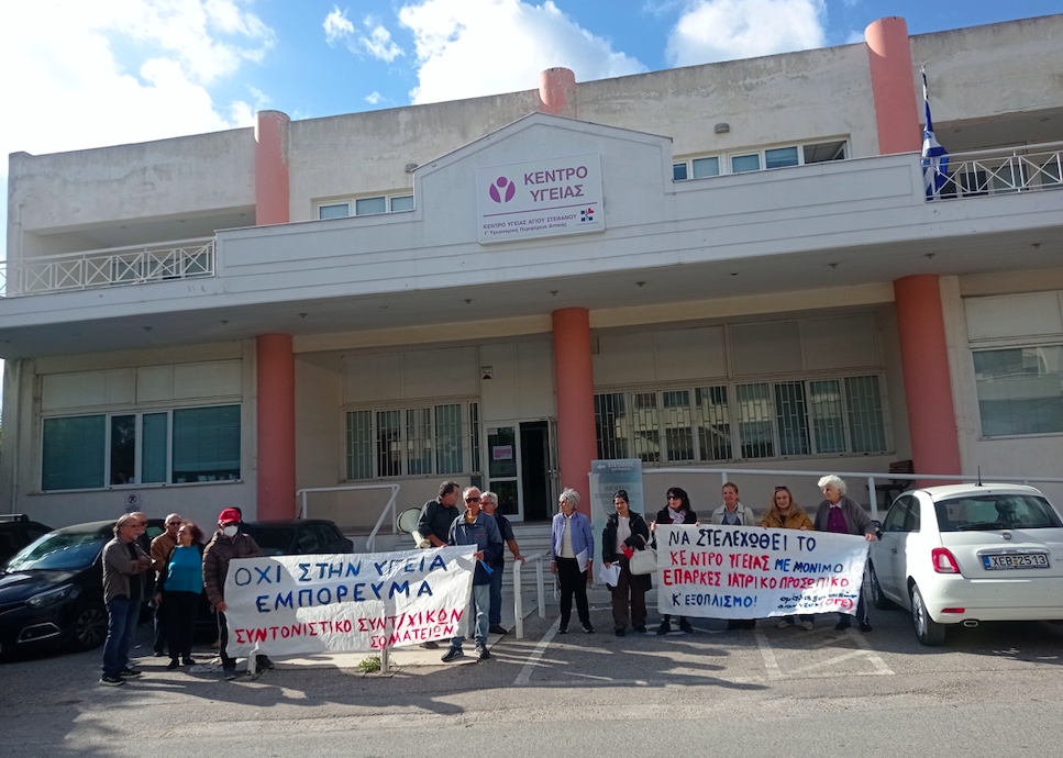 Σε παράσταση διαμαρτυρίας στο Κέντρο Υγείας Αγίου Στεφάνου προέβη η Ομάδα Γυναικών Διονύσου (μέλος της ΟΓΕ) μαζί με το Συντονιστικό Συνταξιουχικών Σωματείων της περιοχής στις 20 Νοεμβρίου, αναδεικνύοντας τις σοβαρές ελλείψεις του Κ.Υ. σε πολλές και κρίσιμες ειδικότητες, διεκδικώντας να στελεχωθεί άμεσα με όλο το απαραίτητο ιατρικό και νοσηλευτικό προσωπικό, που να δουλεύει με μόνιμη και σταθερή δουλειά, καθώς και με τον απαραίτητο εξοπλισμό.
