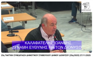 Η παλαιότητα των σχολικών πλην του Κρυονερίου, όπως και όλων των δημοτικών κτηρίων, καθώς και η επιζήμια για τα σχολεία κατάργηση των Σχολικών Επιτροπών ήταν τα μόνα στα οποία συμφώνησε ο επικεφαλής της μείζονος στην τοποθέτησή του αμέσως μετά. Διέψευσε στη συνέχεια τη Δήμαρχο για την έλλειψη διαδικασιών (σ.σ. σε συμφωνία-πλαίσιο της δικής του Διοίκησης στηρίχθηκε, άλλωστε, επί ένα χρόνο ο Δήμος για τις επισκευές στα σχολικά κτήρια) ενώ κατηγόρησε τη Δημοτική Αρχή για ανετοιμότητα, παρόλο που οι εξελίξεις με τις Σχολικές Επιτροπές ήταν από καιρό γνωστές, καθώς και για γενικόλογες αναφορές όταν τα προβλήματα είναι συγκεκριμένα και επαναλαμβανόμενα, όπως ασφάλεια, συντήρηση και επισκευές, ελλείψεις σε υλικοτεχνική υποδομή και προσωπικό. Ο κ,. Καλαφατέλης υπογράμμισε, επιπλέον, πως η πραγματικότητα “απέχει δραματικά” από τις υποσχέσεις της νυν Δημοτικής Αρχής και επιφυλάχθηκε να διαπιστώσει στον Προϋπολογισμό του Δήμου που θα έρθει για το 2026 τα ποσά που θα προβλεφθούν για τις ανάγκες των σχολείων. Τέλος, και συγχαίροντας την Ένωση Γονέων, ζήτησε από τη Δημοτική Αρχή την άμεση καταγραφή, προτεραιοποίηση και δημοσιοποίηση όλων των προβλημάτων ανά σχολική μονάδα, χρονοδιάγραμμα υλοποίησης εργασιών με δέσμευση κονδυλίων και συνέχιση των προγραμμάτων λειτουργικής και ενεργειακής αναβάθμισης των σχολικών κτηρίων.