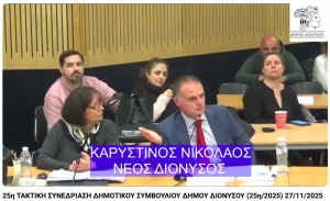 Στη δική του τοποθέτηση, αμέσως μετά, ο επικεφαλής του Νέου Διόνυσου υπενθύμισε πως υποχρέωση του κράτους είναι να εξασφαλίζει σε όλα τα παιδιά τη δυνατότητα πρόσβασης σε δωρεάν παιδεία, στα κατάλληλα κτήρια. Στην κατεύθυνση αυτή ο κ. Καρυστινός, που είχε διατελέσει Αντιδήμαρχος Παιδείας επί 15 μήνες στην προηγούμενη Διοίκηση, πρότεινε και επέμεινε στη συνεχή και μεγαλύτερη διεκδίκηση και πίεση εκ μέρους της Δημοτικής Αρχής προς όλους τους αρμόδιους φορείς, και κυρίως το Υπουργείο Παιδείας, σε ένα συνδυασμό ήπιων παρεμβάσεων και μεγαλύτερης μαχητικότητας. Πρότεινε, επιπλέον, την κατά το δυνατόν θεσμική θωράκιση των γνωμοδοτικών επιτροπών, που αντικατέστησαν τις Σχολικές, και που επί ενάμιση χρόνο μέχρι σήμερα υπολειτουργούν.