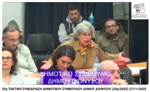 Η Γ. Τζάκη Πρόεδρος της Ομάδας Γυναικών Διονύσου, δήλωσε τη στήριξη της Ομάδας προς τους γονείς και τα αιτήματά τους, αναδεικνύοντας τις διαχρονικές ευθύνες και του κράτους και των Δημοτικών Αρχών στα ανεπίλυτα προβλήματα των σχολείων