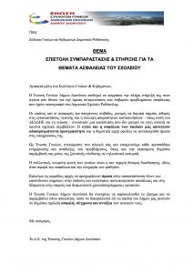 ΕΠΙΣΤΟΛΗ ΣΥΜΠΑΡΑΣΤΑΣΗΣ & ΣΤΗΡΙΞΗΣ ΓΙΑ ΤΑ ΘΕΜΑΤΑ ΑΣΦΑΛΕΙΑΣ ΤΟΥ ΣΧΟΛΕΙΟΥ