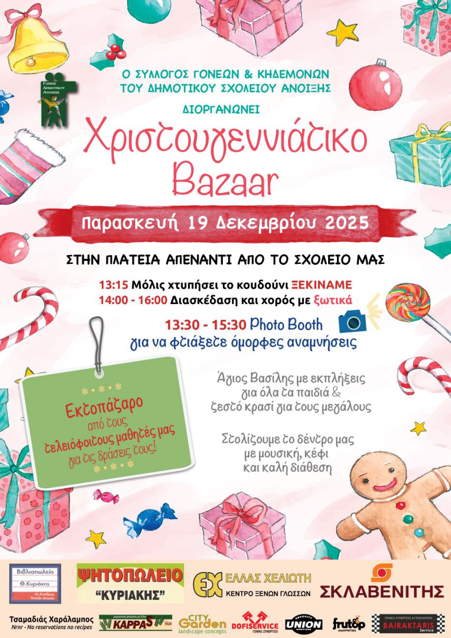 Χριστουγεννιάτικο bazaar και γιορτή από το Σύλλογο Γονέων του Δημοτικού Σχολείου Άνοιξης