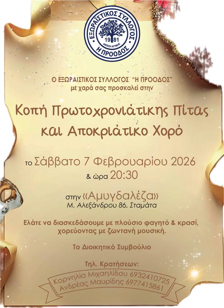 Κόβουμε τη Βασιλόπιτά μας για το 2026, ανταλλάσσουμε ευχές και διασκεδάζουμε σε αποκριάτικους (και όχι μόνο) ρυθμούς με ζωντανή ορχήστρα!