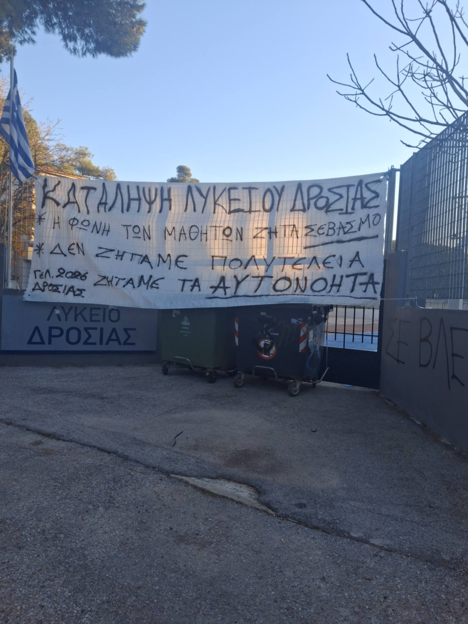Μια ημέρα διήρκεσε η κατάληψη στην οποία προχώρησαν χθες Πέμπτη 15 Ιανουαρίου οι μαθητές του Γενικού Λυκείου Δροσιάς, διαμαρτυρόμενοι- κατά πληροφορίες- για τη μούχλα στο εργαστήριο Χημείας του σχολείου. Υπενθυμίζεται πως το Λύκειο από το 2017 στεγάζεται σε ενοικιαζόμενο χώρο στο Ζάννειο Ίδρυμα, όπου δεν λείπουν τα προβλήματα, ενώ πληθαίνουν οι φήμες που το θέλουν να μετακομίζει στο Διόνυσο, μαζί με το ΓΕΛ Διονύσου, στο νέο σχολικό κτήριο που αναμένεται να παραδοθεί μέσα στη χρονιά.