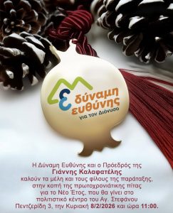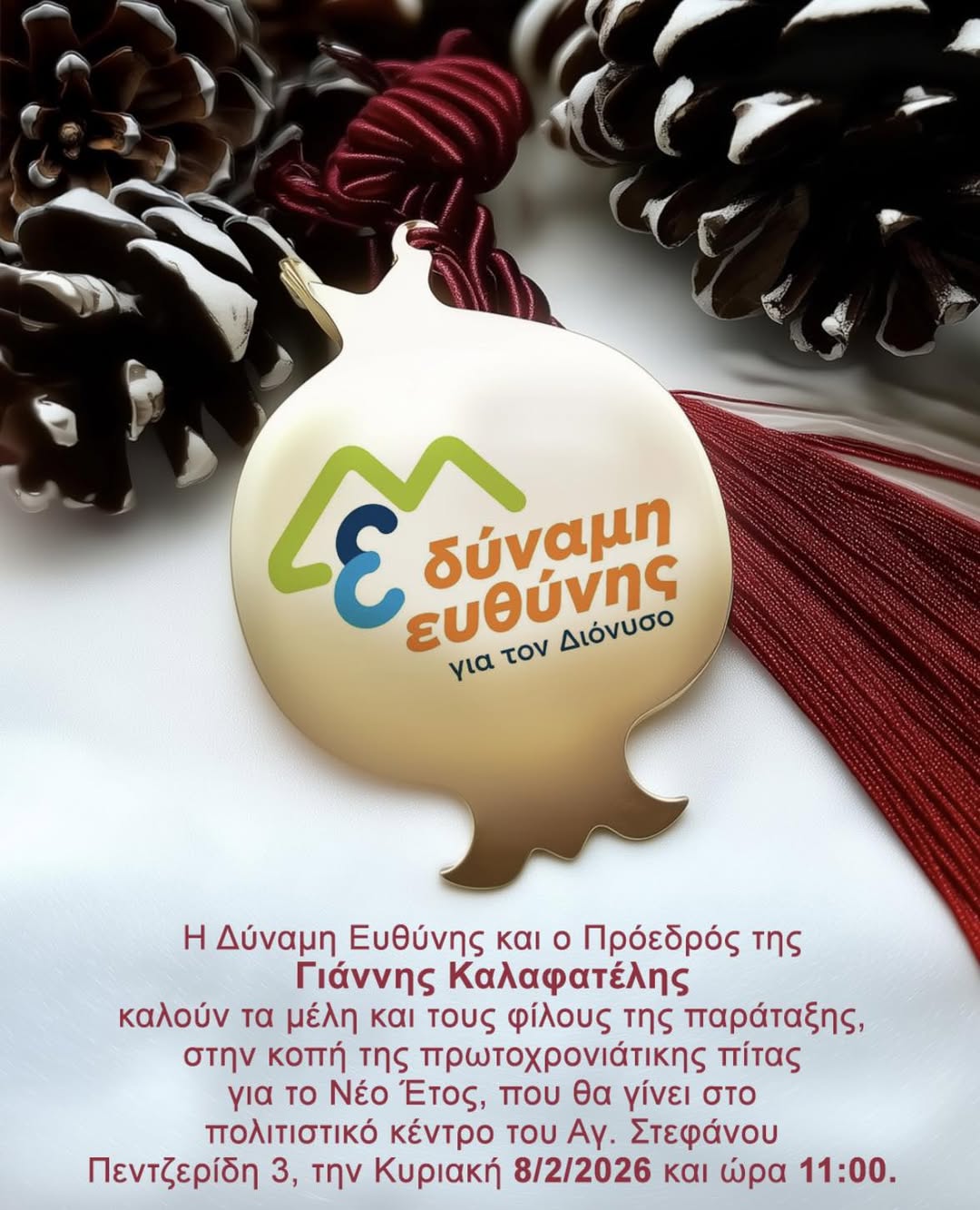 Η δημοτική μας παράταξη σας προσκαλεί στην κοπή της πρωτοχρονιάτικης πίτας για το 2026!