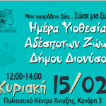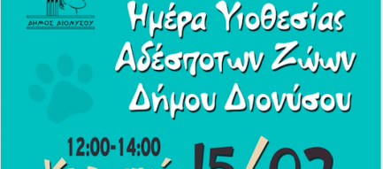 Την πρώτη για το 2026 Ημέρα Υιοθεσίας αδέσποτων οργανώνει ο Δήμος Διονύσου, σε συνεργασία με τους Εθελοντές Αρωγούς Αγ. Στεφάνου, την Κυριακή 15 Φεβρουαρίου, 12μ.-2μμ, στο Πολιτιστ[...]