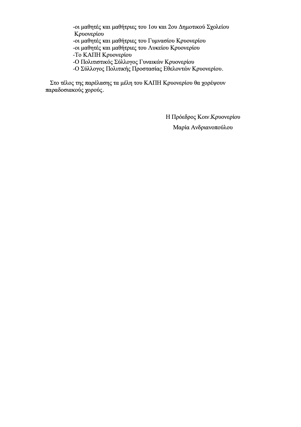 Ο Δήμος καλεί όλους τους δημότες να παρευρεθούν και να τιμήσουν με την παρουσία τους την εθνική επέτειο, αποδίδοντας τον οφειλόμενο φόρο τιμής στους αγωνιστές της Ελευθερίας.