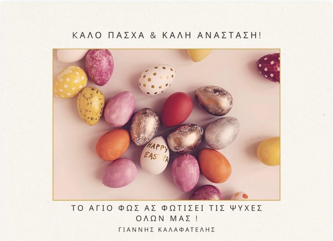 Με αφορμή τη μεγάλη γιορτή του Πάσχα, εύχομαι ολόψυχα το μήνυμα της Ανάστασης να φωτίσει τις ζωές όλων μας, χαρίζοντας ελπίδα, δύναμη και αισιοδοξία