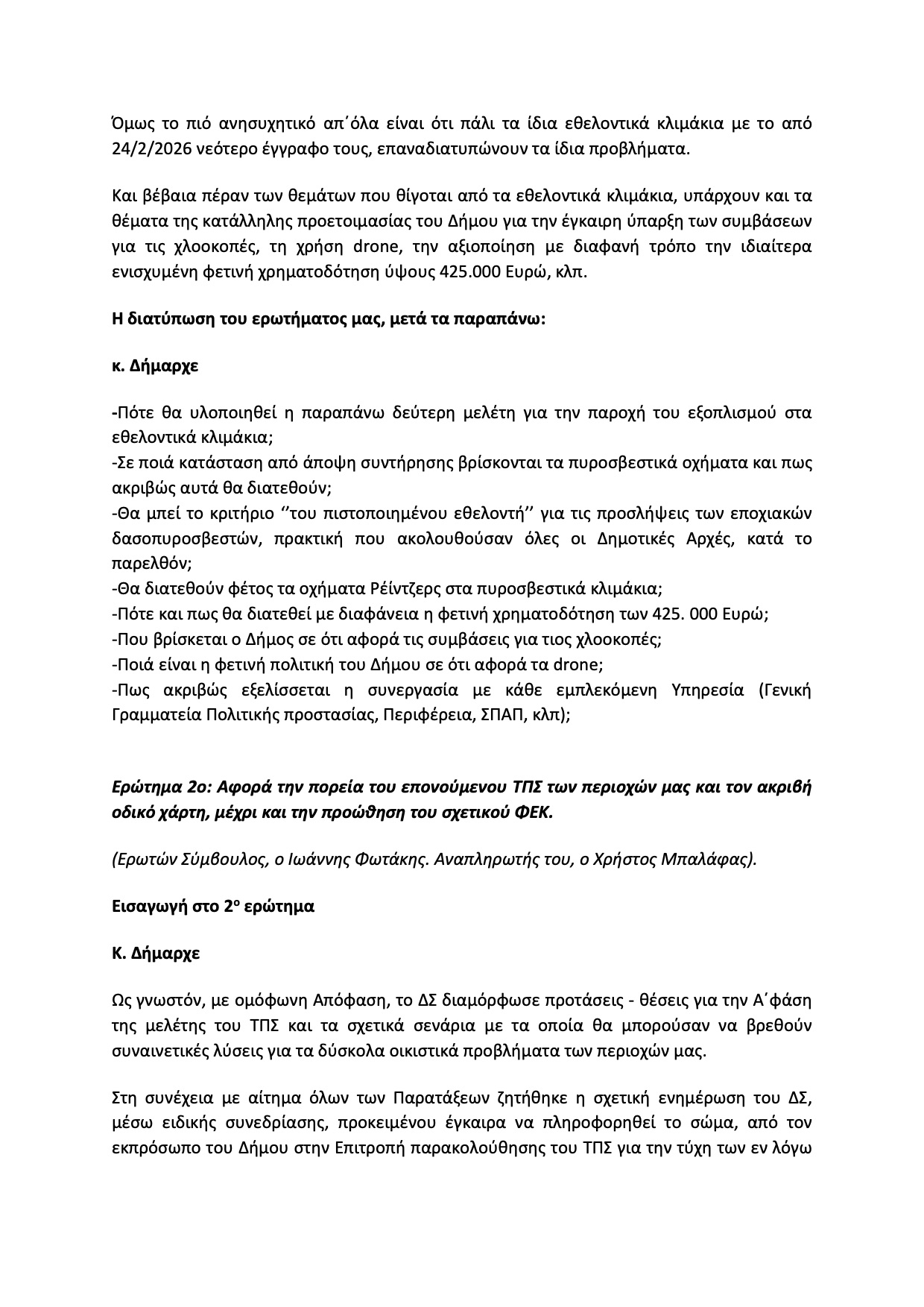 Όμως το πιο ανησυχητικό απ’όλα είναι ότι πάλι τα ίδια εθελοντικά κλιμάκια με το από 24/2/2026 νεότερο έγγραφό τους, επαναδιατυπώνουν τα ίδια προβλήματα.