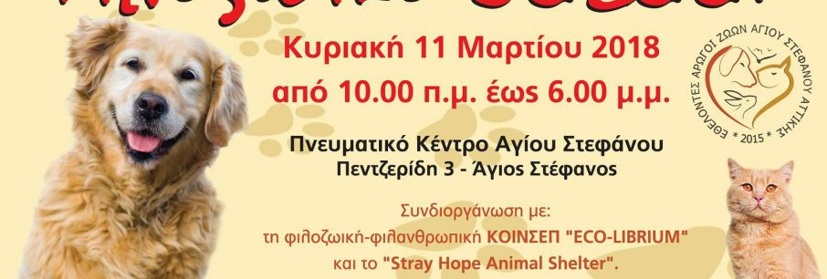Ο Σύλλογος Εθελοντών Αρωγών Ζώων Αγ. Στεφάνου, σε συνεργασία με την ΚΟΙΝΣΕΠ «ECO-LIBRIUM” και τo «Stray Hope Animal Shelter» οργανώνει πασχαλινό φιλοζωικό Bazaar με λαχειοφόρο αγορ[...]
