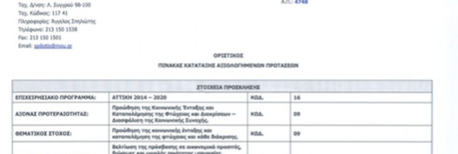 Ανακοινώθηκαν και αναρτήθηκαν από την ΕΥΔΕΠ Αττικής οι οριστικοί πίνακες αποτελεσμάτων συγκριτικής αξιολόγησης των προτάσεων στο πλαίσιο της πρόσκλησης τίτλο «Δομή Παροχής Βασικών [...]