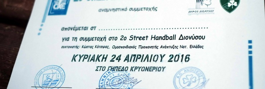 ΔΕΛΤΙΟ ΤΥΠΟΥ Την Κυριακή 24 Απριλίου 2016 πραγματοποιήθηκε για 2η συνεχή χρονιά το «2ο Street Handball Διονύσου», αυτή τη φορά στο Κρυονέρι. Τη διοργάνωση ανέλαβε για ακόμη μια φορ[...]