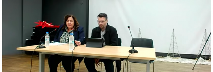 Τα χριστουγεννιάτικα δεντράκια που διακρίνονται στο βάθος της φωτογραφίας, δεν αποτελούν διακόσμηση της αίθουσας του Πολιτιστικού Κέντρου στον Άγ. Στέφανο όπου γίνονται οι συνεδριά[...]