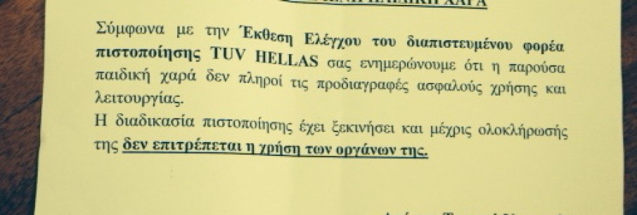 Η πινακίδα της φωτογραφίας θα εμφανίζεται στο εξής έξω από όλες τις παιδικές χαρές του Δήμου, τουλάχιστον μέχρι να ληφθούν όλα τα παραίτητα διορθωτικά μέτρα, που θα εξασφαλίζουν τη[...]