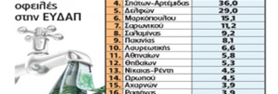 Στην εικοστή θέση, σύμφωνα με το σχετικό πίνακα με τους οφειλέτες της ΕΥΔΑΠ, βρίσκεται ο Δήμος Διονύσου, που χρωστάει 2,8 εκατομμύρια ευρώ! Και με το δεδομένο αυτό, είναι λίαν πιθα[...]