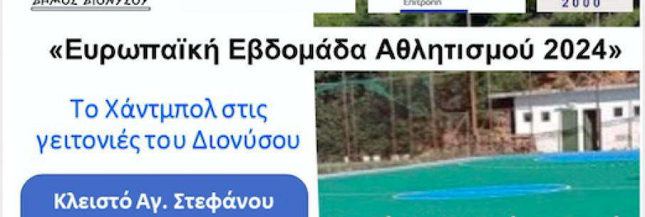 ΔΕΛΤΙΟ ΤΥΠΟΥ Δράση αθλητισμού BeActive στο Διόνυσο, με το πρόγραμμα «Το χάντμπολ στις γειτονιές του Διονύσου» θα πραγματοποιηθεί την Κυριακή 22 Σεπτεμβρίου 2024 στις 11.30πμ, στο κ[...]
