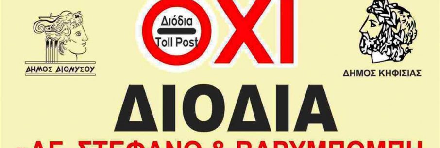 Συλλογή υπογραφών κατά της εγκατάστασης διοδίων στους κόμβους της Βαρυμπόμπης και του Αγ. Στεφάνου ξεκίνησε η διαπαραταξιακή διαδημοτική επιτροπή των Δήμων Διονύσου και Κηφισιάς, σ[...]
