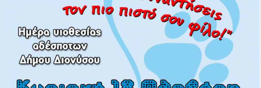 Την πρώτη Ημέρα Υιοθεσίας Αδέσποτων Ζώων οργανώνει η Αντιδημαρχία Πολιτισμού, Εθελοντισμού και Φιλοζωίας. Η δράση θα πραγματοποιηθεί στην πλατεία της Δροσιάς την Κυριακή 18 Φεβρουα[...]