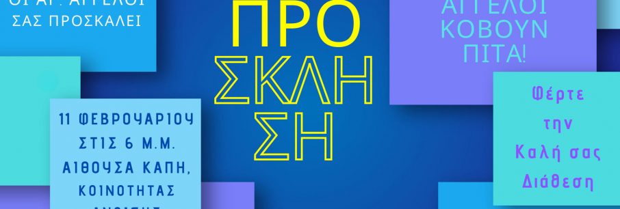 Την Κυριακή 11/2/2024 στις 6μμ θα μαζευτούμε στην αίθουσα των ΚΑΠΗ Άνοιξης, να σας ευχηθούμε, να συζητήσουμε, να κόψουμε τη βασιλόπιτα, και να σχεδιάσουμε τα επόμενα βήματα για εμά[...]