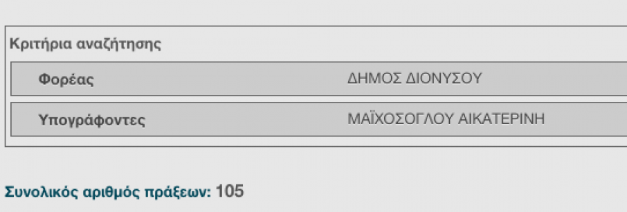Στις 105 έφτασαν οι αποφάσεις τής νέας Δημάρχου Διονύσου Κ. Μαϊχόσογλου που αναρτήθηκαν σήμερα, Πέμπτη 4 Ιανουαρίου, στη Διαύγεια και αφορούν στη δέσμευση πιστώσεων στον προϋπολογι[...]