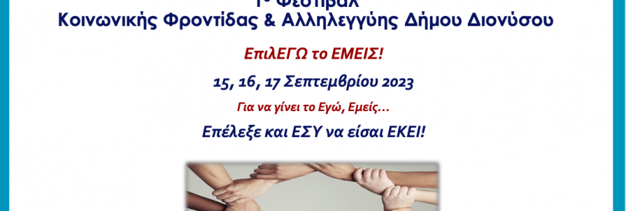 ΑΝΑΚΟΙΝΩΣΗ Σας ενημερώνουμε ότι το Κέντρο Κοινότητας του Δήμου Διονύσου είναι μία υπηρεσία Κοινωνικής Φροντίδας και Αλληλεγγύης, η οποία λειτουργεί ως ένα τοπικό σημείο αναφοράς γι[...]
