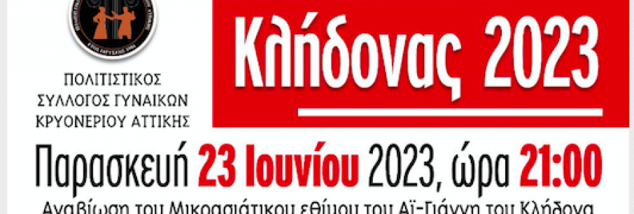 Για 22η χρονιά ο Πολιτιστικός Σύλλογος Γυναικών Κρυονερίου, σε συνεργασία με το Δήμο Διονύσου, αναβιώνει το μικρασιάτικο έθιμο του Αη Γιάνη του Κλήδονα, αύριο Παρασκευή 23 Ιουνίου [...]