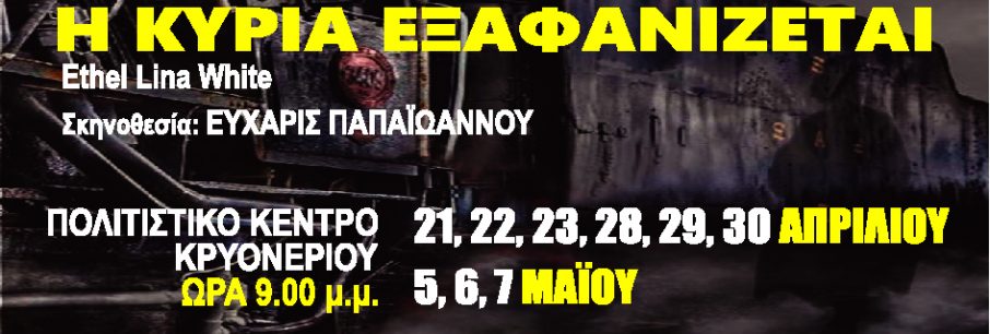 Την κωμωδία μυστηρίου «Η κυρία εξαφανίζεται» παρουσιάζει στο Κρυονέρι η θεατρική ομάδα ACTΩΡΕΣ. Η σκηνοθεσία ανήκει στην Εύχ. Παπαϊωάννου και η παράσταση θα ανεβεί στο Πολιτιστικό [...]