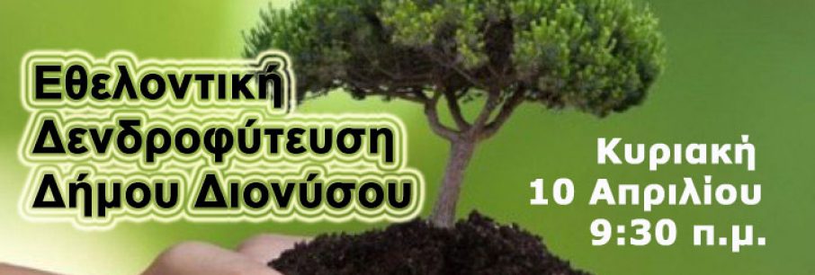 ΠΡΟΣΚΛΗΣΗ Ο Δήμος Διονύσου στο πλαίσιο της συνεχιζόμενης προσπάθειάς του να ενδυναμώσει το φυσικό πλούτο της περιοχής μας, διοργανώνει Εθελοντική Δενδροφύτευση σε πληγείσες περιοχέ[...]