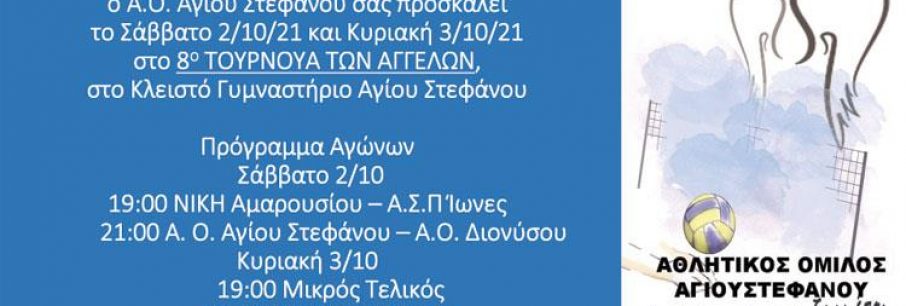 Πεθαίνει μόνο ό, τι ξεχνιέται. Για 8η χρονιά ο ΑΟ Αγίου Στεφάνου στις 02 και 03 Οκτωβρίου διοργανώνει το Τουρνουά Αγγέλων στο οποίο φέτος θα συμμετάσχουν οι ομάδες του Α.Ο. Διονύσο[...]