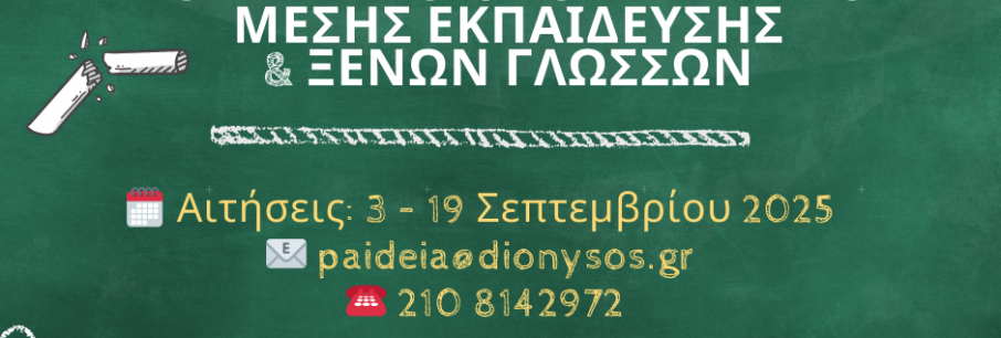 ΑΝΑΚΟΙΝΩΣΗ Με την έναρξη της νέας σχολικής χρονιάς, η Μουσική Σχολή του Δήμου Διονύσου συνεχίζει με συνέπεια και φροντίδα το εκπαιδευτικό της έργο, προσφέροντας υψηλού επιπέδου μου[...]