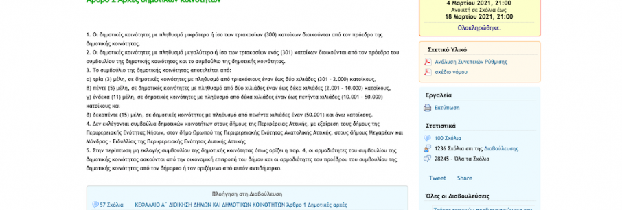 Δυο μόνο σχόλια- επί συνόλου εκατοντάδων- εμφανίζονται με προέλευση το Δήμο Διονύσου στη δημόσια διαβούλευση για το εκλογικό νομοσχέδιο, και ειδικά στο άρθρο 2, στο οποίο προβλέπετ[...]