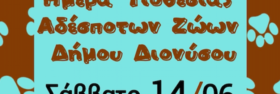 Το Σάββατο 14 Ιουνίου στην πλατεία της Δροσιάς και από τις 12 μ. μέχρι τις 2μμ θα πραγματοποιηθεί μια ακόμη Ημέρα Υιοθεσίας για τα αδέσποτα του Δήμου Διονύσου. Γράφει σχετικά στο [...]