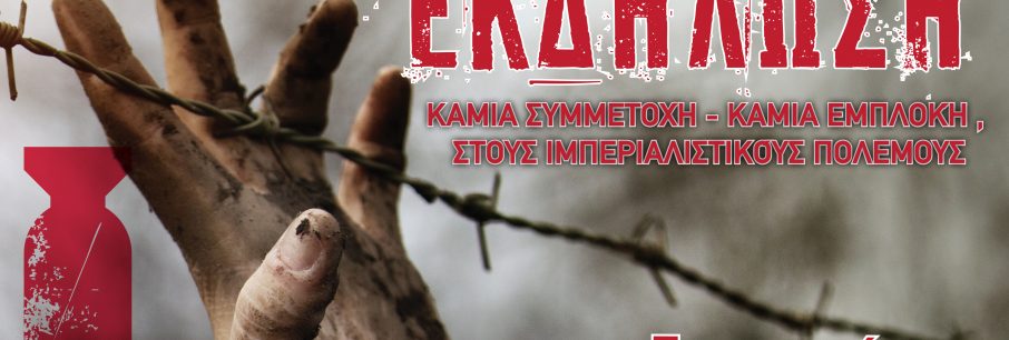 Επτά φορείς οργανώνουν από κοινού αντιπολεμική εκδήλωση στο Πνευματικό Κέντρο του Αγ. Στεφάνου την προσεχή Παρασκευή 13 Δεκεμβρίου στις 8 το βράδυ. Με το σύνθημα “Καμιά συμμετοχή- [...]