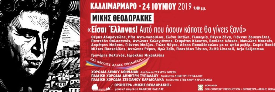 ΔΕΛΤΙΟ ΤΥΠΟΥ Μεγάλη Συναυλία – αφιέρωμα στον Μίκη Θεοδωράκη θα πραγματοποιηθεί το βράδυ της Δευτέρας 24 Ιουνίου 2019, στις 9:00 μ.μ., στο Καλλιμάρμαρο – Παναθηναϊκό Στά[...]