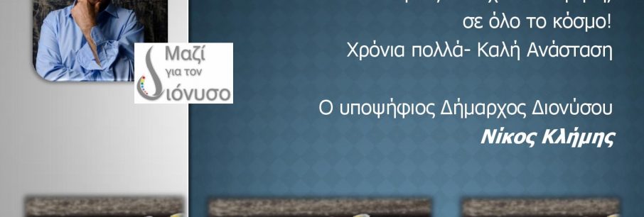 Εύχομαι η Ανάσταση του Χριστού, να ζεστάνει τις καρδιές μας! Υγεία, ευτυχία και ειρήνη, σε όλο το κόσμο! Χρόνια πολλά- Καλή Ανάσταση Ο υποψήφιος Δήμαρχος Διονύσου Νίκος Κλήμης &nb[...]