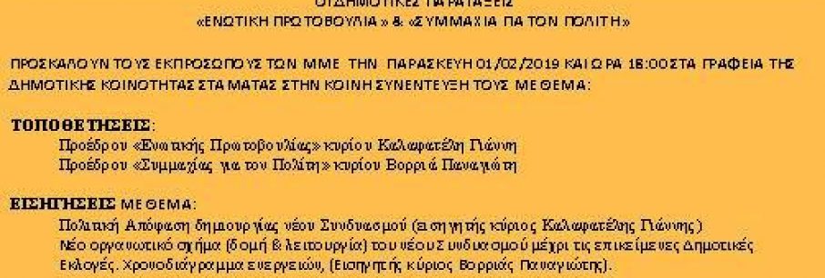 Την πολιτική απόφαση για τη δημιουργία νέου συνδυασμού, καθώς και τη δομή και τη λειτουργία του μέχρι τις επικείμενες δημοτικές εκλογές, θα παρουσιάσουν σε κοινή συνέντευξη Τύπου τ[...]
