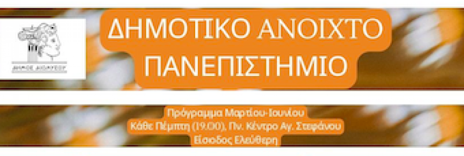 Αύριο Πέμπτη 10 Απριλίου, στο Πολιτιστικό Κέντρο Αγ. Στεφάνου στις 7 το βράδυ, θα πραγματοποιηθεί η δεύτερη κατά σειρά διάλεξη του Ανοιχτού Δημοτικού Πανεπιστημίου Διονύσου. Ο Φίλι[...]