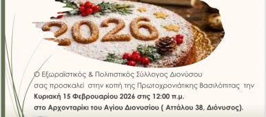 Κυριακή βράδυ 1 Φεβρουαρίου αναρτήθηκε στη Διαύγεια η απόφαση Δημάρχου, με την οποία ορίζονται οι νέοι Αντιδήμαρχοι στο Δήμο Διονύσου, με θητεία από σήμερα 1 Φεβρουαρίου μέχρι τις [...]