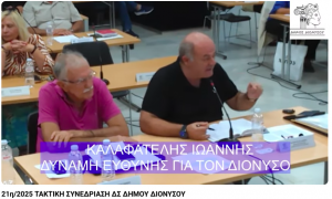 Η πρώτη σχετική τοποθέτηση ήρθε από το επικεφαλής της μείζονος και τέως Δήμαρχο Γ. Καλαφατέλη, που στην προηγούμενη θητεία κλήθηκε με τη σειρά του να αντιμετωπίσει το πρόβλημα. Ο κ. Καλαφατέλης ανέτρεξε στην πορεία και την εξέλιξη του έργου της αποχέτευσης που- υπενθυμίζεται- αφορά στις 5 Κοινότητες (Κρυονέρι, Ροδόπολη, Σταμάτα, Διόνυσο και μικρό μέρος του Αγ. Στεφάνου) και παρουσίασε πολλά σκαμπανεβάσματα από το 2014, οπότε και δημοπρατήθηκε: Μεγάλη έκπτωση, προβληματικός ο πρώτος ανάδοχος, υποκατάστασή του από έτερο ανάδοχο που αντιμετώπισε διοικητικά προβλήματα, αγώνας των Δημοτικών Αρχών να διατηρήσουν ζωντανό το έργο ώστε και να μη χαθούν οι ευρωπαϊκοί πόροι αλλά και να εκτελεστεί το μεγαλύτερο έργο υποδομής της πόλης, ειδικές προσκλήσεις, τέλος, με απειλές για έκπτωση προς τον ανάδοχο για να απομακρύνει τα μπάζα του, με μερική ανταπόκριση. Σήμερα, τόνισε ο τέως Δήμαρχος, που το έργο έχει εκτελεστεί κατά 95%, γεννάται το ερώτημα γιατί ο όγκος των μπάζων έχει τριπλασιαστεί, προκαλώντας ανησυχία και αντιδράσεις στην τοπική κοινωνία, όπως φάνηκε και από την πρόσφατη ανοιχτή επιστολή του Εξωραϊστικού και Πολιτιστικού Συλλόγου Διονύσου. Σημειώνεται εδώ πως η επιστολή έρχεται να προστεθεί στις συστηματικές αντιδράσεις κατοίκων και τη σωρεία αποφάσεων του Τοπικού Συμβουλίου της Κοινότητας Διονύσου και στις δυο προηγούμενες θητείες, περί άμεσης απομάκρυνσης των μπάζων, που όμως δεν ευτύχησαν να υλοποιηθούν. Με το δεδομένο πως το Δεκέμβριο του 2025 λήγει και επισήμως- μετά από αλλεπάλληλες παρατάσεις- το έργο της αποχέτευσης, ο κ. Καλαφατέλης κάλεσε τη Διοίκηση να αναφέρει τις ενέργειες στις οποίες θα προχωρήσει, προκειμένου να απομακρυνθούν τα μπάζα “να μη μείνει ούτε ένα κυβικό καινά αποδοθεί ο χώρος καθαρός”. Ο ίδιος υπογράμμισε επιπλέον πως ο χώρος λανθασμένα έχει αποδοθεί από το Κτηματολόγιο υπέρ αγνώστων, και κάλεσε τη Δημοτική Αρχή να προβεί σε όλες τις απαιτούμενες ενέργειες, ώστε να διορθώσει το λάθος, αλλά και σε διαχειριστική μελέτη ώστε ο χώρος να παραδοθεί αναπλασμένος στους κατοίκους της περιοχής.