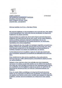 Στην επιστολή αυτή με απάντησή του επανέρχεται ο Αντιδήμαρχος Κοινωνικών Υπηρεσιών: