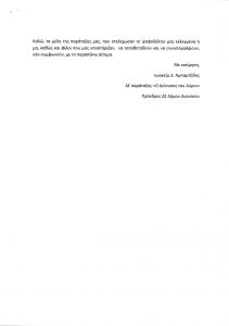 Ο κ. Αμπαρτζίδης, σε ιδιαιτέρως υψηλούς τόνους, θέτει θέματα ηθικής τάξεως, αξιοκρατίας, προσωπικής ευθύνης, δεοντολογίας, στρεβλής λειτουργίας του Δήμου και κοστολόγησης των προσωπικών σχέσεων, υπογραμμίζει πως “το νόμιμο δεν είναι πάντοτε και ηθικό” και καλεί όσους στελέχωσαν το ψηφοδέλτιο του συνδυασμού της Δημοτικής Αρχής, είτε εξελέγησαν είτε όχι, αλλά και τους φίλους της παράταξης, να συνυπογράψουν το αίτημα εφόσον συμφωνούν: