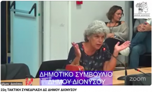 *Έγκλημα χαρακτήρισε την υπογειοποίηση του δρόμου η κ. Πέππα, διερωτώμενη: “Πώς διασφαλίζεται η ποιότητα ζωής των δημοτών με την ηχορύπανση που θα προκαλούν εκατοντάδες τρένα, αν ο δρόμος υπογειοποιηθεί; Ή θα βάλουν ηχοπετάσματα και θα μας κάνουν Αττική Οδό;” Η ίδια τόνισε πως ο Δήμος Διονύσου, που είναι περικυκλωμένος από απαγορευτικά Διατάγματα, πρέπει να διεκδικεί μεγάλα έργα, ενώ δήλωσε κι εκείνη υπέρ της βύθισης των γραμμών. Αναρωτήθηκε, τέλος, γιατί ένας οργανισμός όπως η ΕΡΓΟΣΕ ανέλαβε να εκπονήσει μελέτη που αφορά στο Δήμο χωρίς ο Δήμος να ερωτηθεί, όταν μάλιστα αυτός ο Δήμος έχει ήδη πάρει άλλη απόφαση.