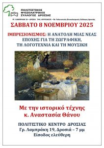 Στην Τέχνη είναι αφιερωμένος ο Νοέμβριος για τον Πολιτιστικό Φυσιολατρικό Σύλλογο Δροσιάς.