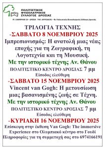 και για τον Van Gogh (Σάββατο 15 Νοεμβρίου) στο Πολιτιστικό Κέντρο της Δροσιάς,